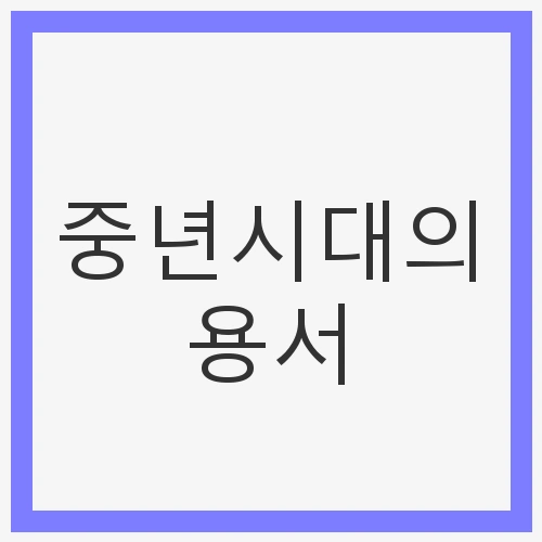 중년시대의 용서는 우리가 가진 과거의 짐을 덜어내고, 새로운 시작을 위한 발판이 됩니다. 삶의 여정에서 우리는 다양한 상처를 겪고, 이를 통해 성장하게 됩니다. 용서는 이러한 과정을 더욱 의미 있게 만들어줄 수 있습니다. 중년의 여러분, 용서를 통해 한 발짝 더 나아가 새로운 삶의 장을 열어보세요. 자기 자신과의 화해는 궁극적으로 더 나은 미래를 만들어갈 수 있는 힘이 됩니다.