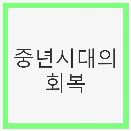 중년은 인생의 전환점으로, 다양한 역할과 책임이 동시에 뒤따르는 시기입니다. 이 시기에는 직장에서의 경쟁, 자녀 양육의 부담, 부부간의 갈등 등이 얽혀서 스트레스를 유발할 수 있습니다. 따라서 중년기에는 회복의 필요성이 더욱 강조됩니다. 회복 과정은 단순히 신체적 건강을 회복하는 것만이 아니라, 정신적 안정과 감정적 회복도 포함해야 합니다. 이를 통해 더 나은 삶을 구축할 수 있습니다.